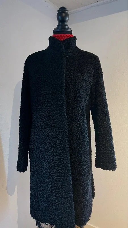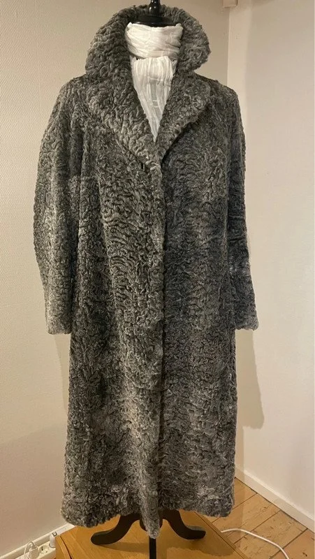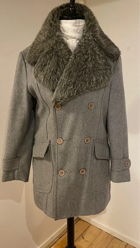 Grå skepparkavaj i ull med fuskpäls, 42/44