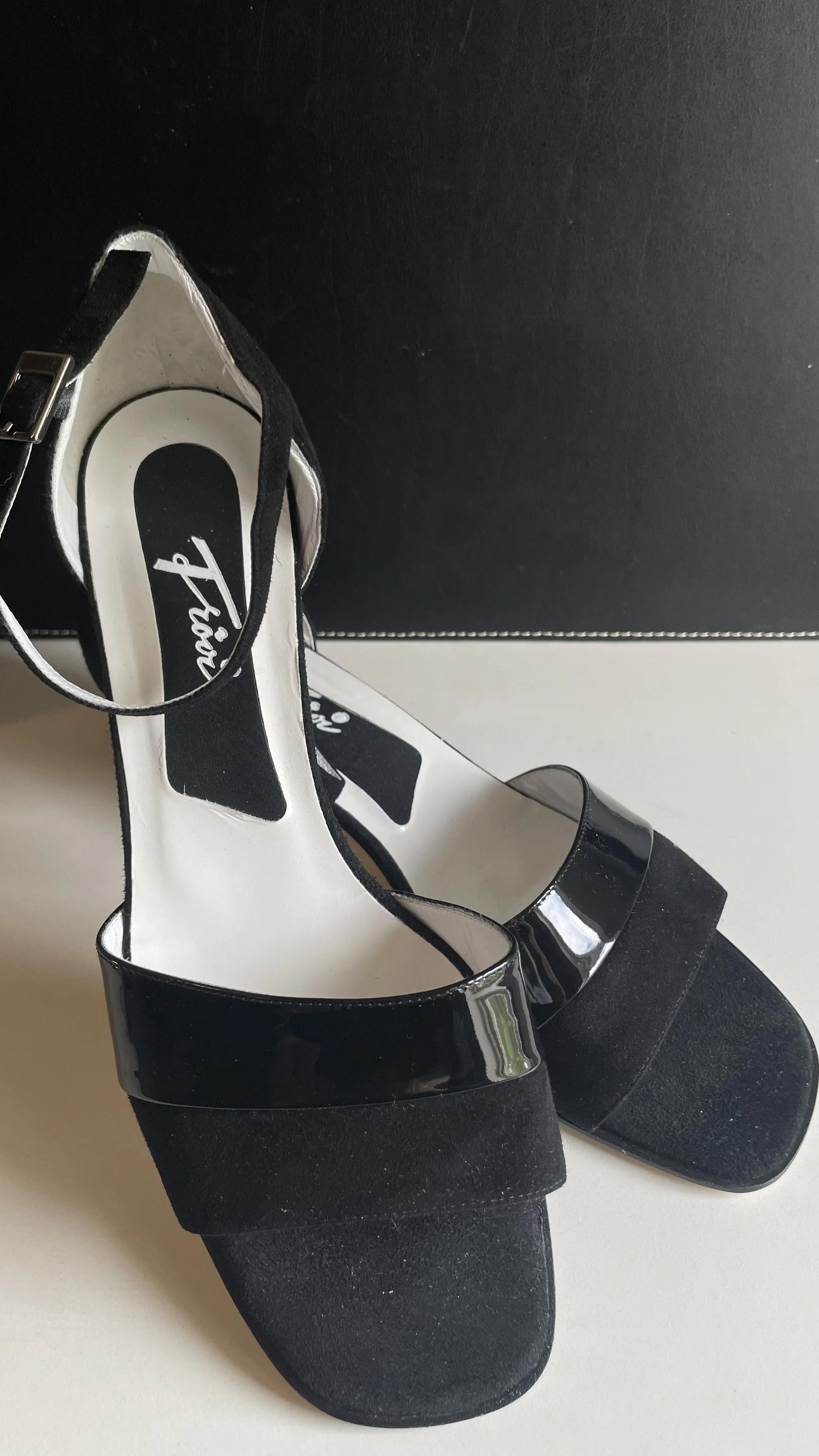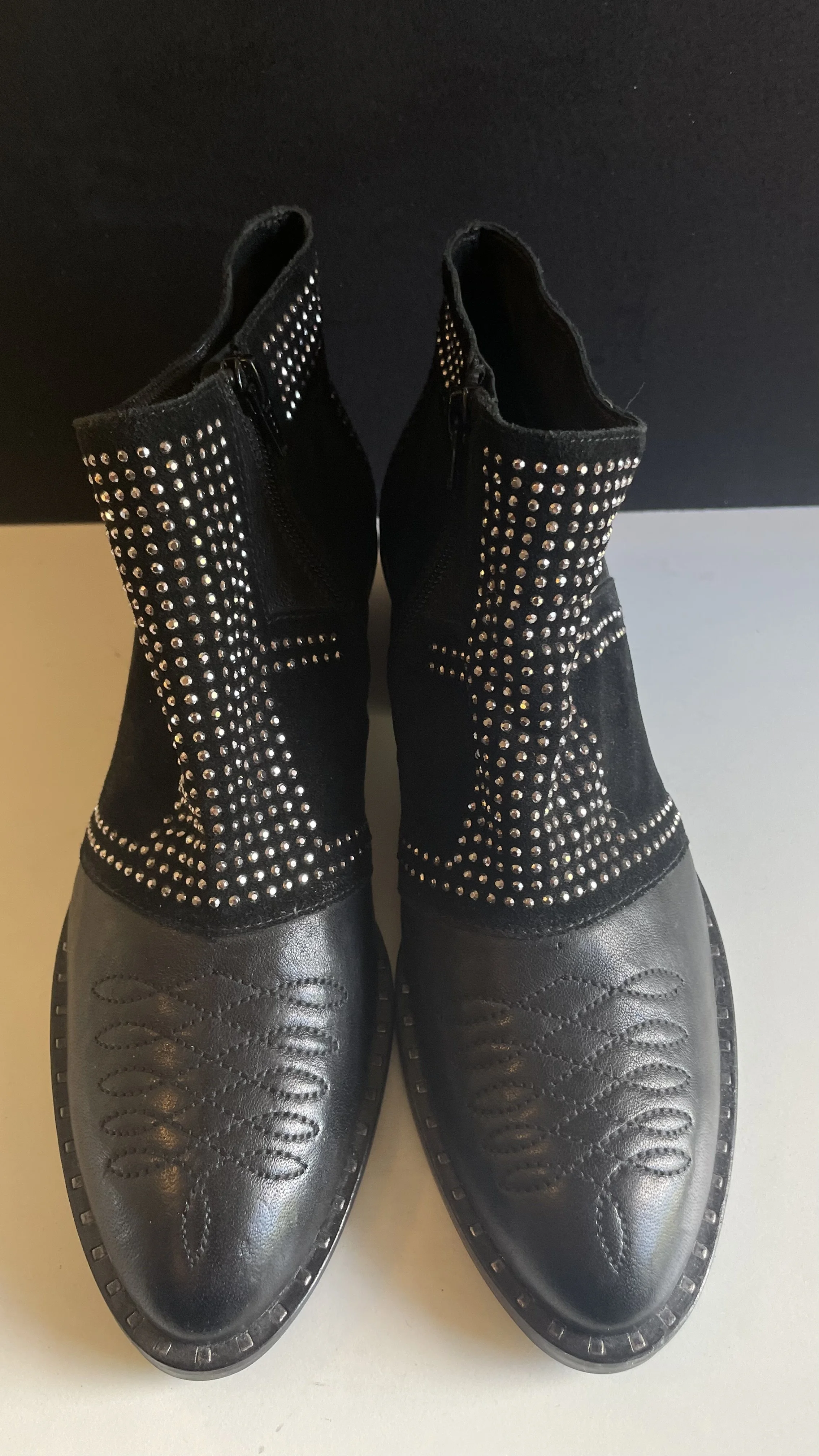 Primeboots svarta western-stövletter med spännen, mocka/läder 38